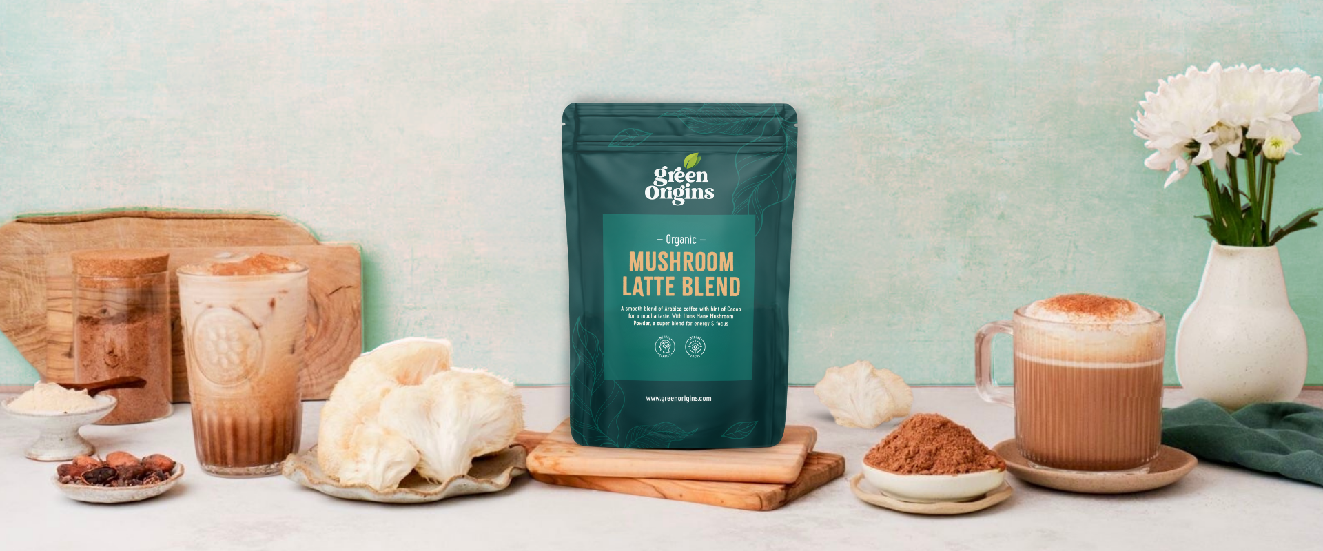 Green Origins Organic Mushroom Latte Blend with Lion's Mane & Coffee for Energy & Focus