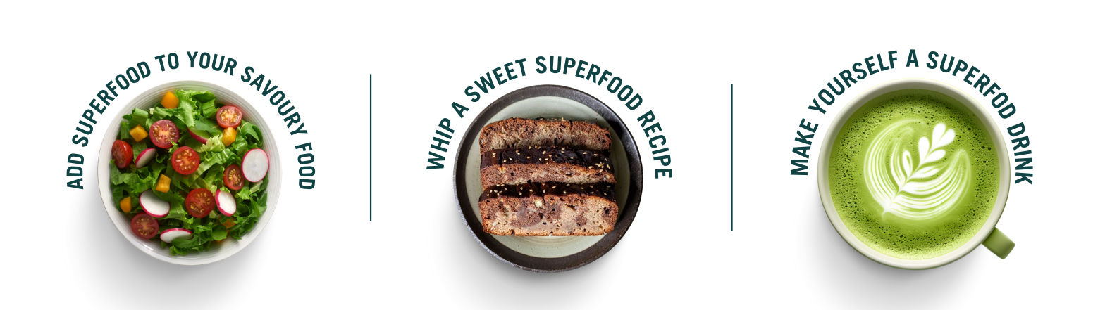 Our products enhance your everyday diet by nourishing your body and mind. Choose from single superfood ingredients to replace everyday alternatives, or our nutritious blends for a convenient superfood pick-me-up.