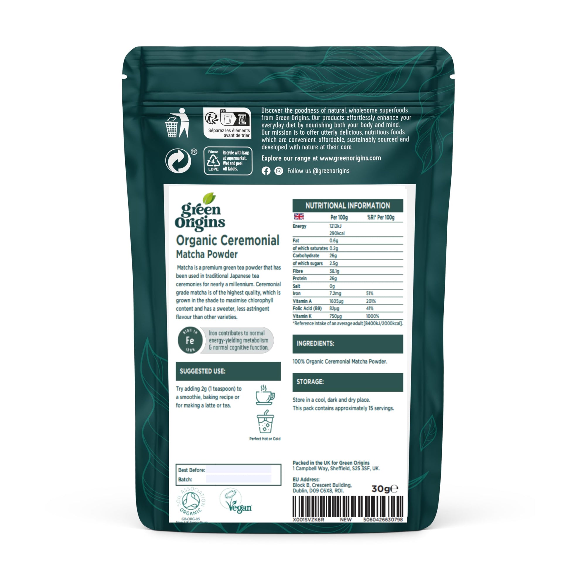 Green Origins Organic Ceremonial Matcha Green Tea Powder
